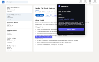 LightningHire – Job Importer är ett användbart tillägg för Chrome som effektiviserar processen att importera jobb och kandidater från LinkedIn. Detta verktyg är gratis och riktar sig både till arbetssökande och rekryterare. Genom att använda LightningHire kan användare enkelt föra över jobbannonser till sin LightningHire-pipeline med ett enda klick, vilket eliminerar behovet av tidskrävande kopiering och klippning samt växling mellan flikar.